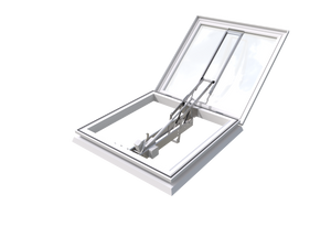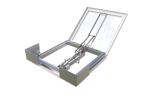 The smoke vent AOV rooflight is polycarbonate material and this is due to this material being lightweight and more impact resistant to maintain the opening and closing function.