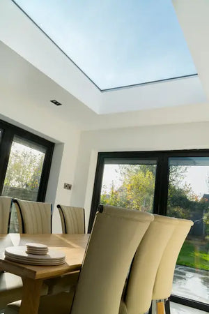 Our rooflight systems are perfect for a wide range of properties, from single-storey flat roof extensions to fully developed residential complexes. These frameless rooflights are crafted to the highest standards, featuring self-cleaning, triple-glazed, UV-protected glass. As a result, they offer outstanding thermal efficiency and noise reduction.