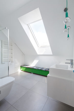 Pivoting roof windows enable homeowners to transform small, dark or unusually-shaped spaces into domestic showrooms that enhance their lifestyle. Centre pivot Fakro roof windows are ideal for rooms with low ceilings or pitched walls with an angle between 15° and 90°. Due to the way they open you can generally place them lower on the pitched ceiling than you would top hung windows, even if there is a lot of furniture in the space.