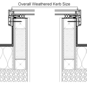 The image below shows the external weathered upstand size which is the same size as the rooflight you order.
